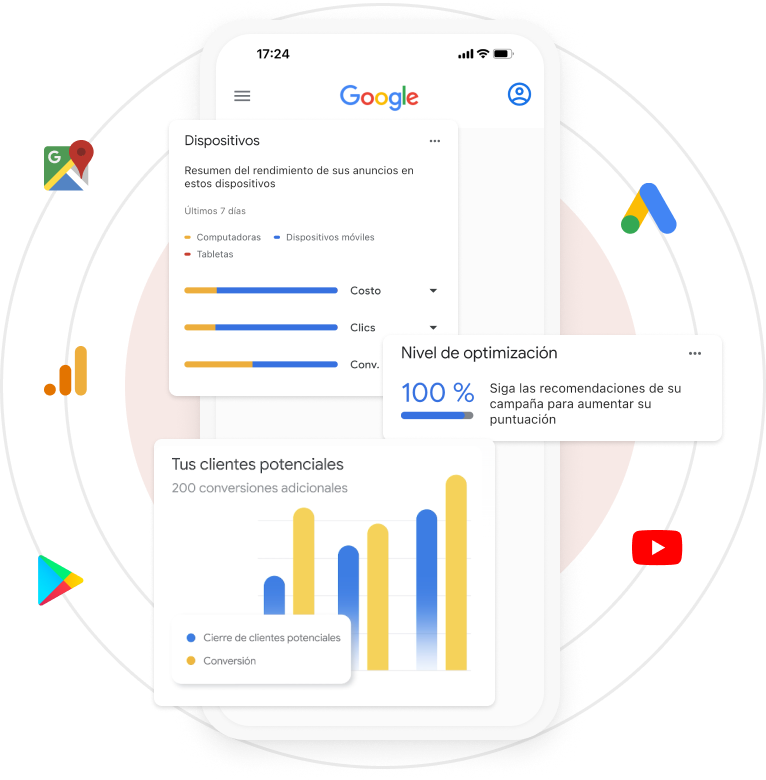 Las campañas para apps están optimizadas para maximizar las descargas desde Google Play y la App Store. Con anuncios automáticos que se muestran en Búsqueda, YouTube, Display y más, puedes asegurarte de que tu app llegue a una amplia audiencia interesada en descargarla y utilizarla.