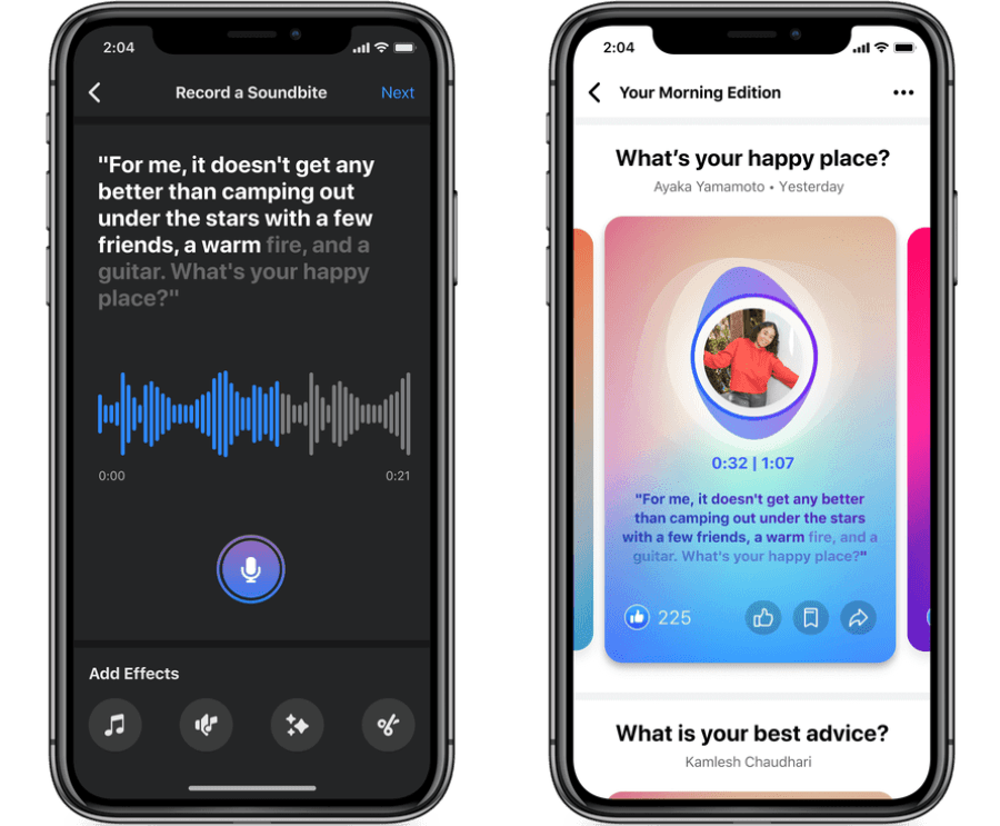 Facebook también nos dio una herramienta llamada Soundbites , con la que se pueden crear clips de audio de formato corto utilizando una gran variedad de efectos y herramientas que utilizan inteligencia artificial.