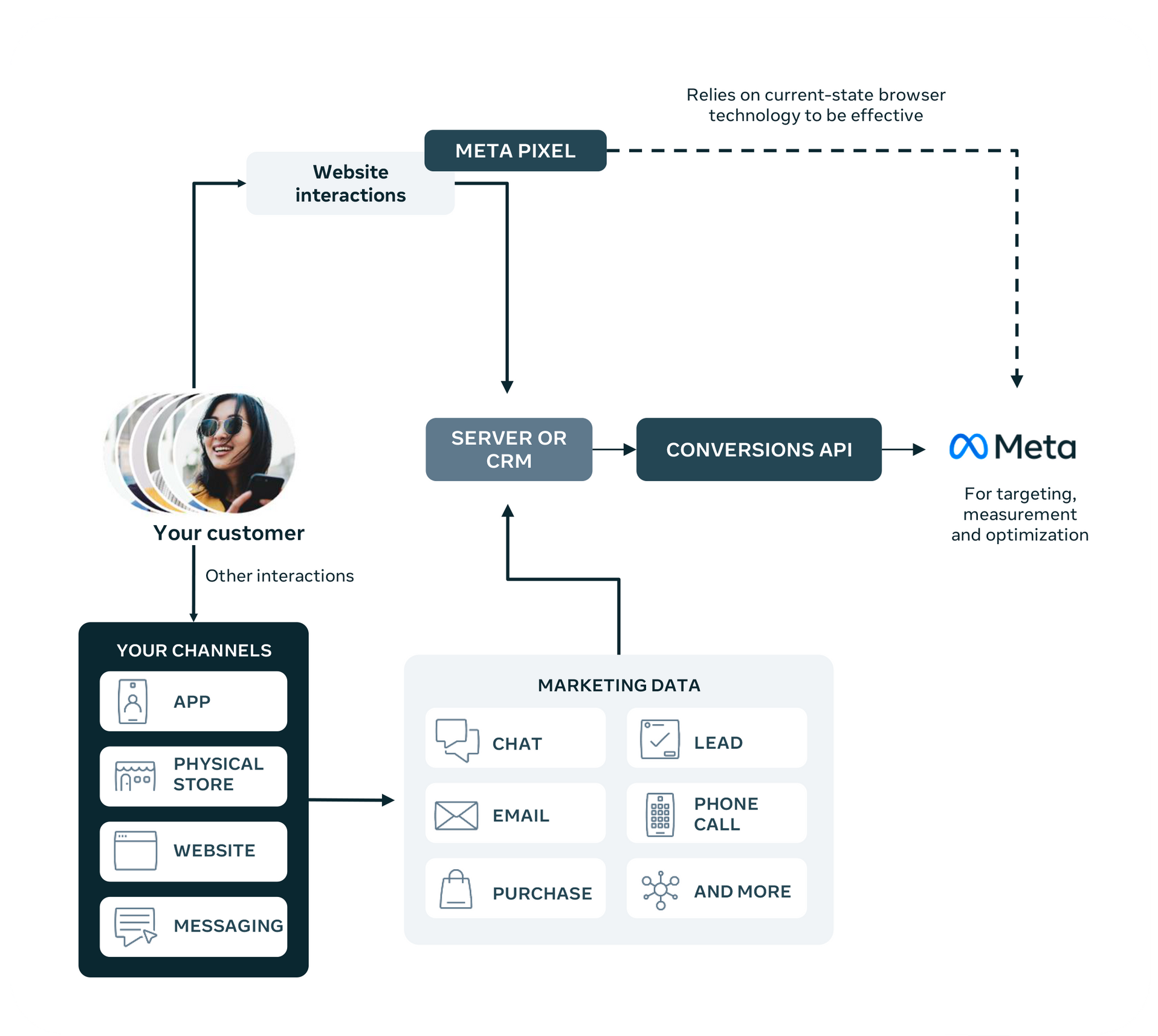 La API de Conversiones y el Meta Pixel juntos proporcionan una conexión de datos más confiable para impulsar el rendimiento.