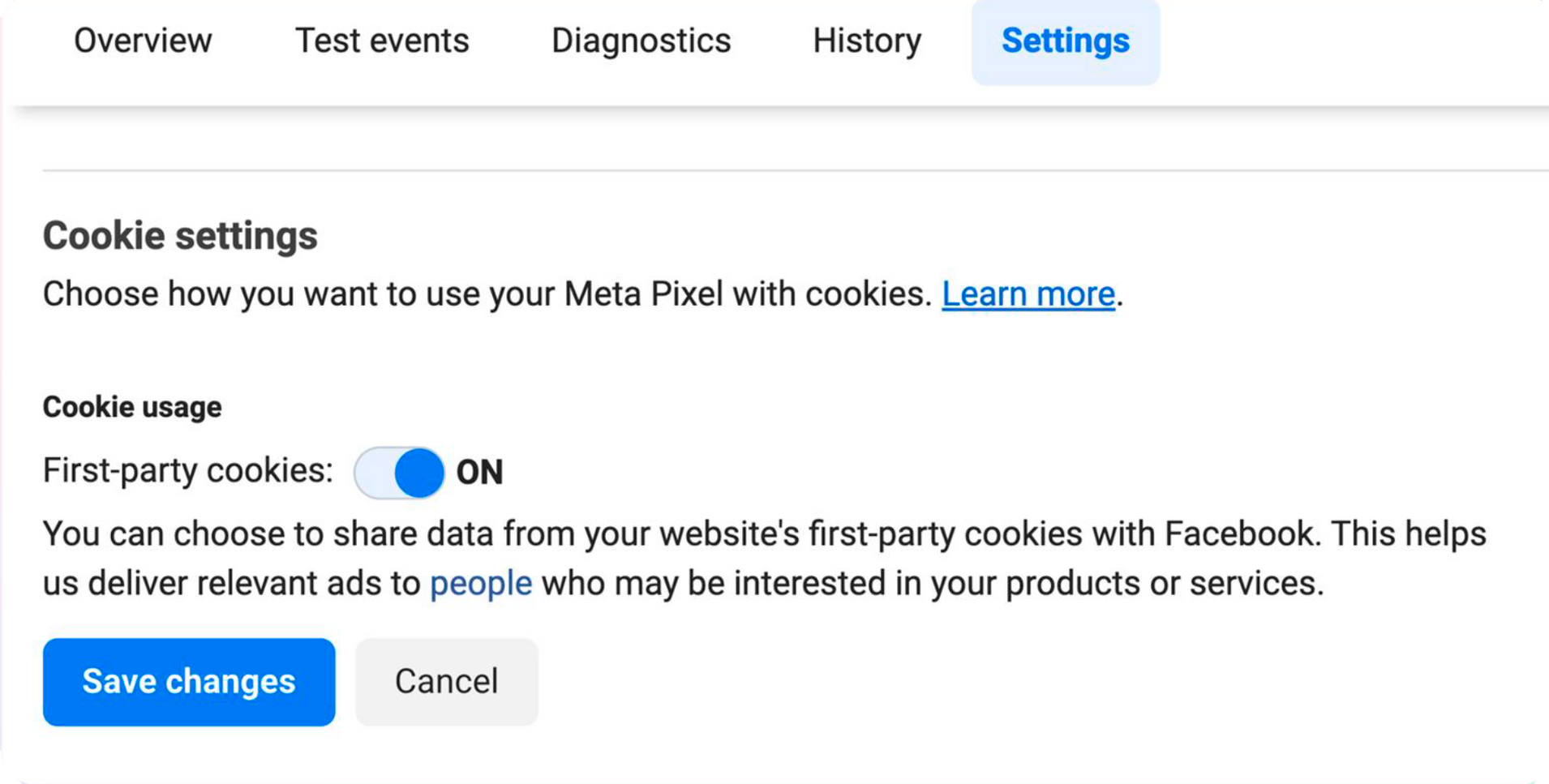 Habilite el uso de cookies propias con el meta píxel