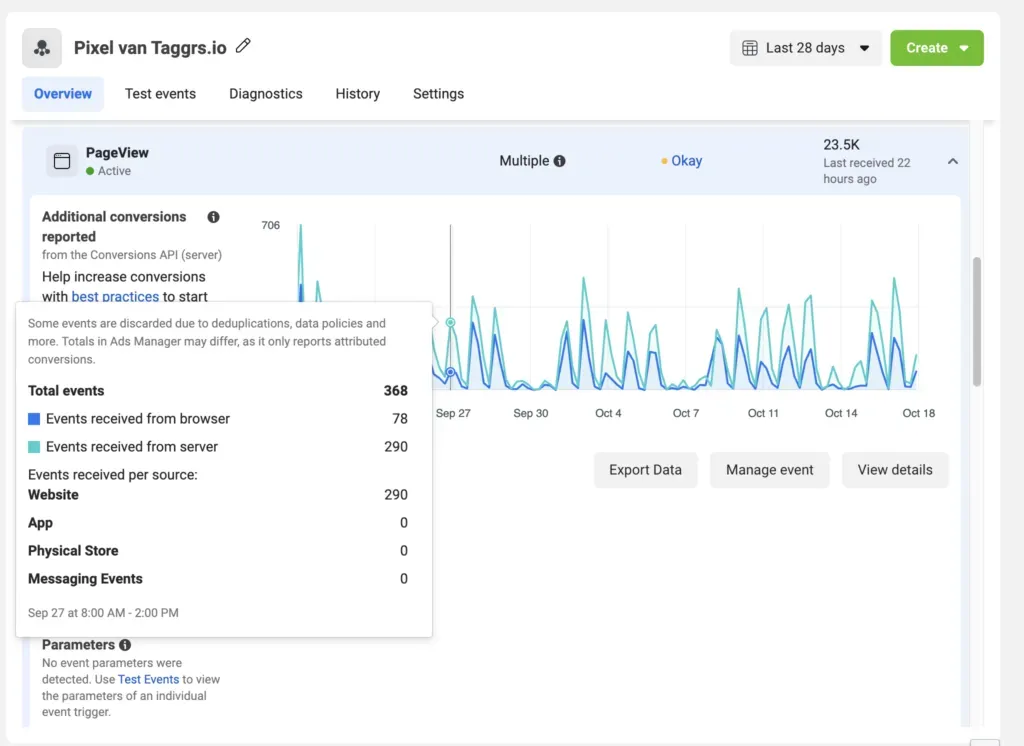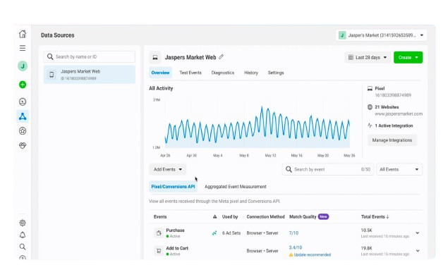 Ver la configuración de tus píxeles en Administrador de eventos.
